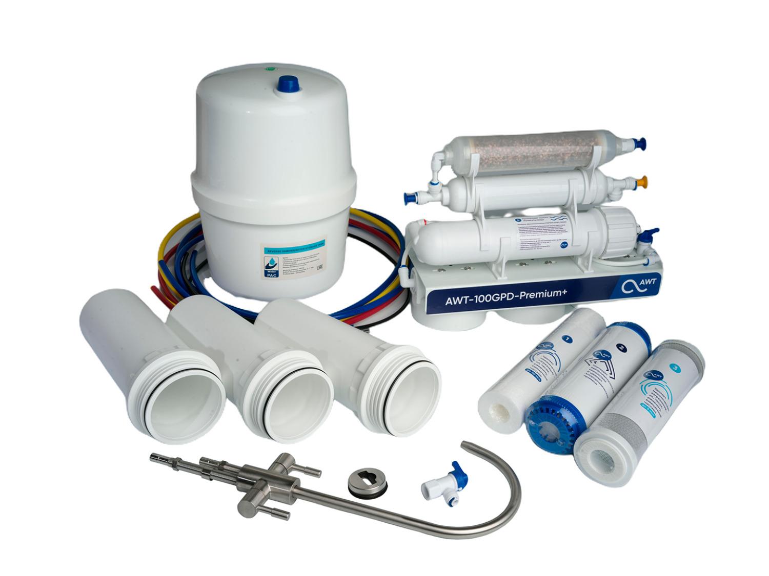 AWT Premium RO100-NP35M — это 6-ступенчатая система обратного осмоса с минерализатором, предназначенная для глубокой очистки и последующей корректировки минерального состава питьевой воды.