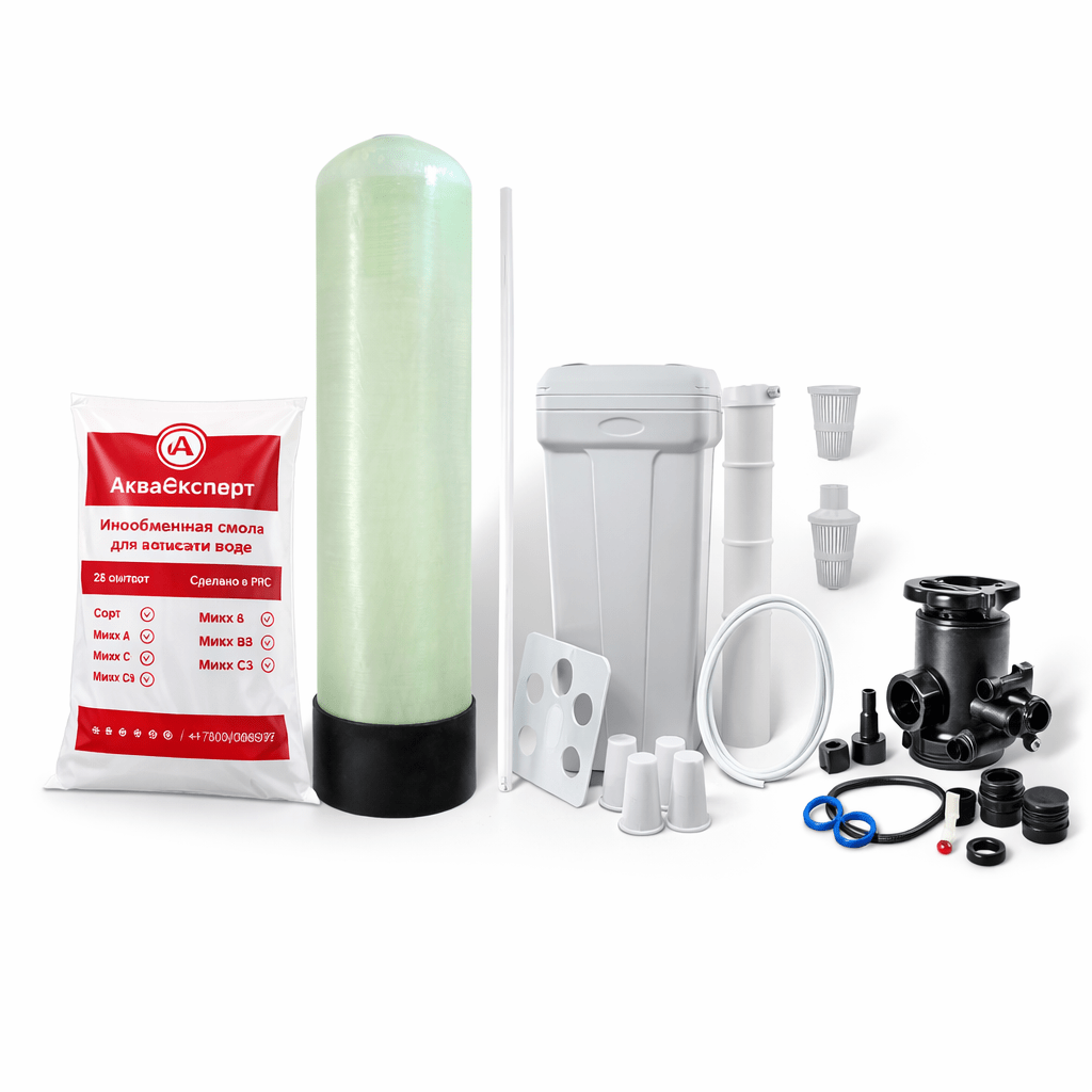 Фильтр Умягчитель для воды оснащён ручным клапаном управления Runxin TMF64A2, который осуществляет регенерацию(промывку) фильтрующего материала.