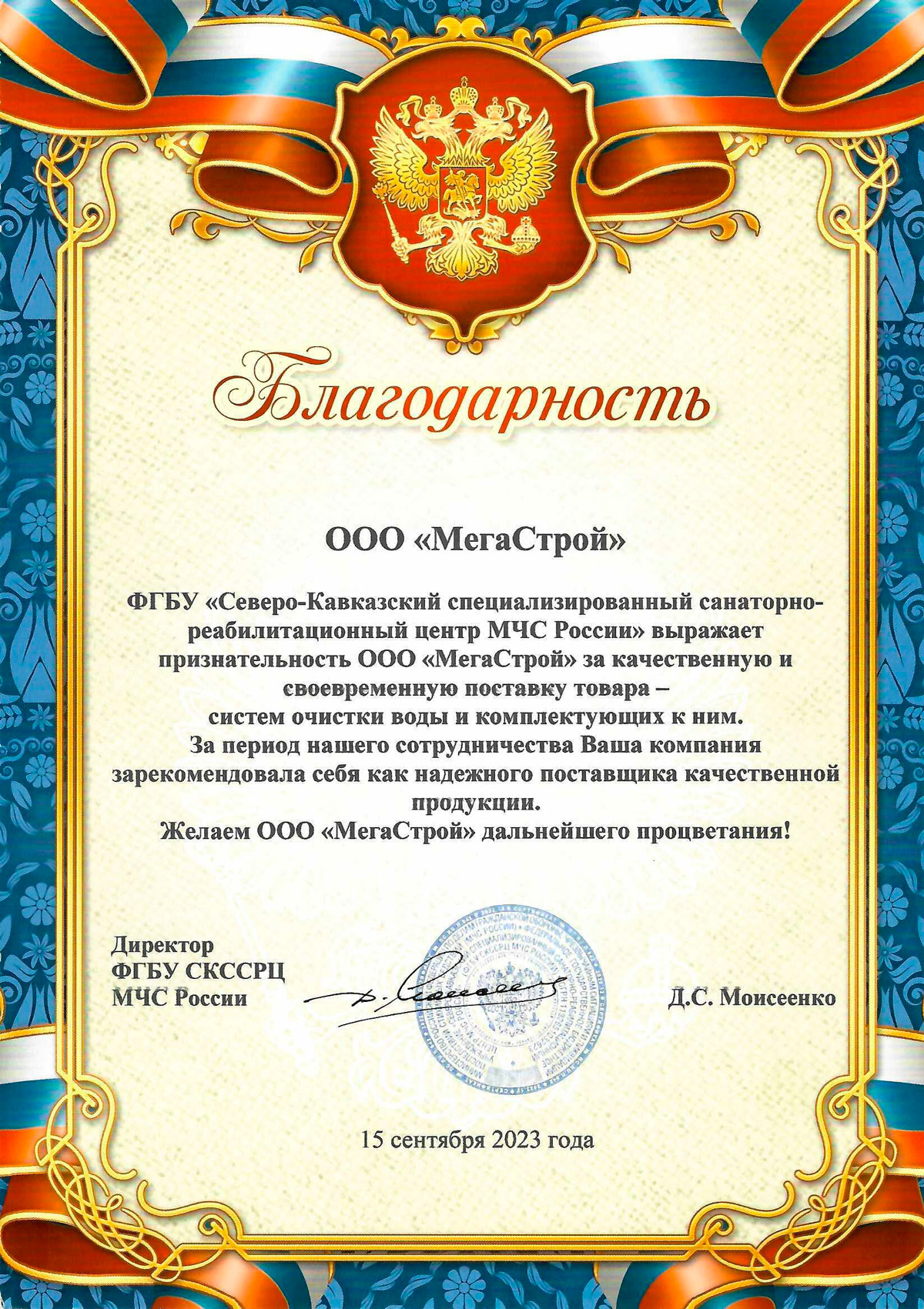 Сертификаты и благодарности